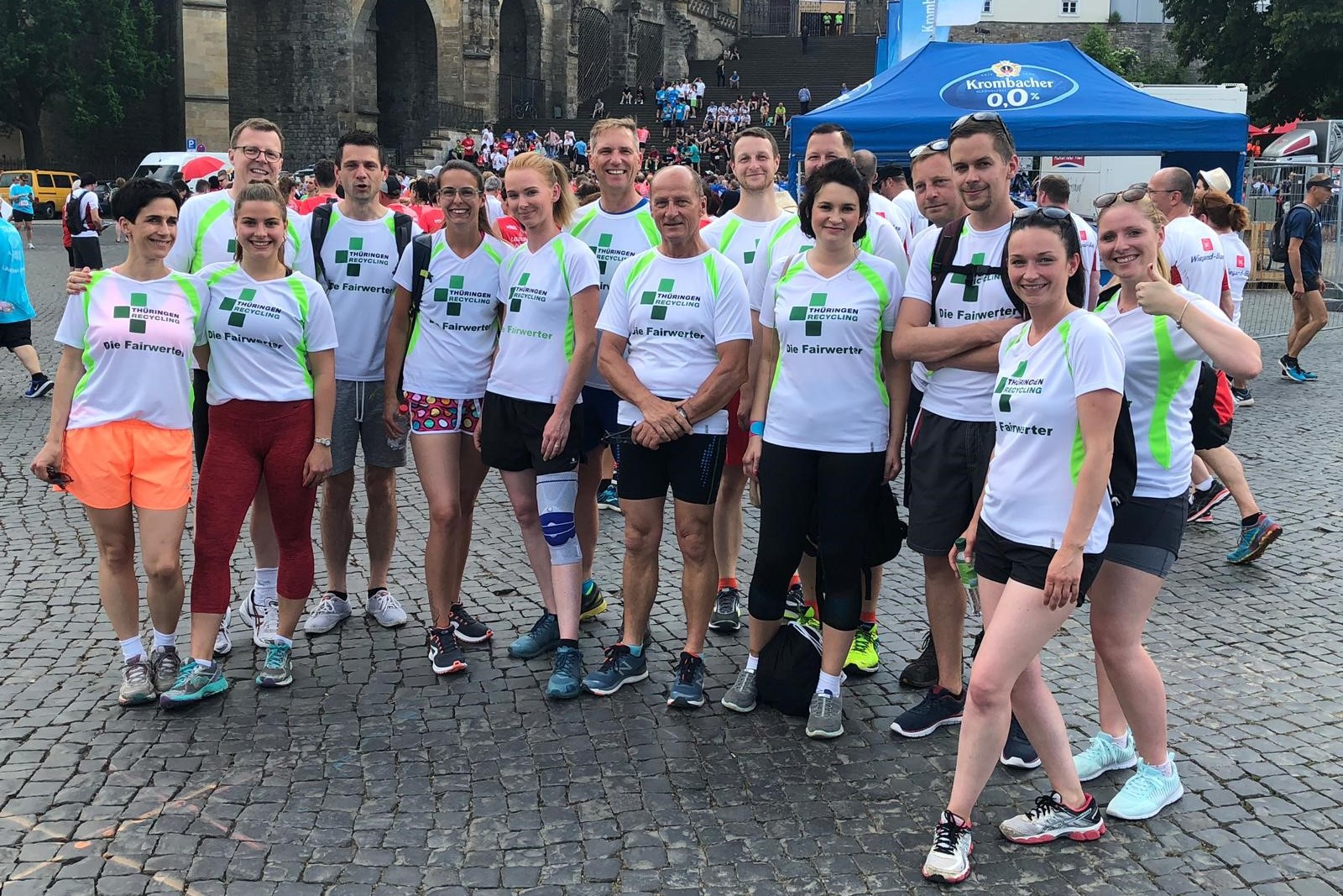 Erstmals stand Thüringen Recycling am 05. Juni 2019 am Erfurter Theaterplatz mit 16 Läuferinnen und Läufern von unseren Standorten Erfurt und Bad Langensalza an der Startlinie des Thüringer Unternehmenslauf RUN und brannte darauf loszulaufen.